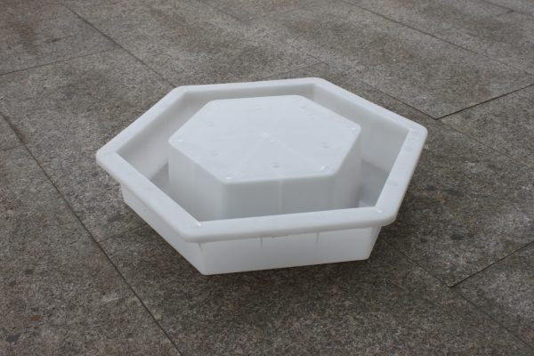 此空心六角護坡磚模具六角邊長為20厘米,高度8厘米,實際所制水泥護坡磚寬度為5厘米,是一個應用相對常規(guī)的六角護坡磚模具。最大的特點就是空心結(jié)構(gòu)的設計,對于一些生態(tài)建設要求較高的護坡項目特別使用,布置好整體鋪設規(guī)劃之后,可在空心六角護坡磚內(nèi)播撒植物種子或直接種植小型灌木類植物,生態(tài)綠化效果突出,對于周圍空氣質(zhì)量的提升相當明顯。