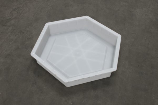 六角護坡模具的種類有很多,而這一款稍顯特別,實心六角護坡磚塑料模具設計樣式以凹凸雙層形式為主,鑒于實際澆筑面積較大,在護坡磚塑料模具底部的六條加強筋交叉構造可以有效保證在澆筑期間模具不易變形及更加牢固。