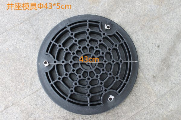 塑料井蓋表面主要以凸起小方格防滑設(shè)計,井蓋上方共布置三個下水污水孔,底部則以扇形網(wǎng)狀結(jié)構(gòu)加強筋設(shè)計,厚度約為5厘米,堅固耐用,使用此污水塑料井蓋進行施工鋪設(shè)有效保障實地安全性能。
