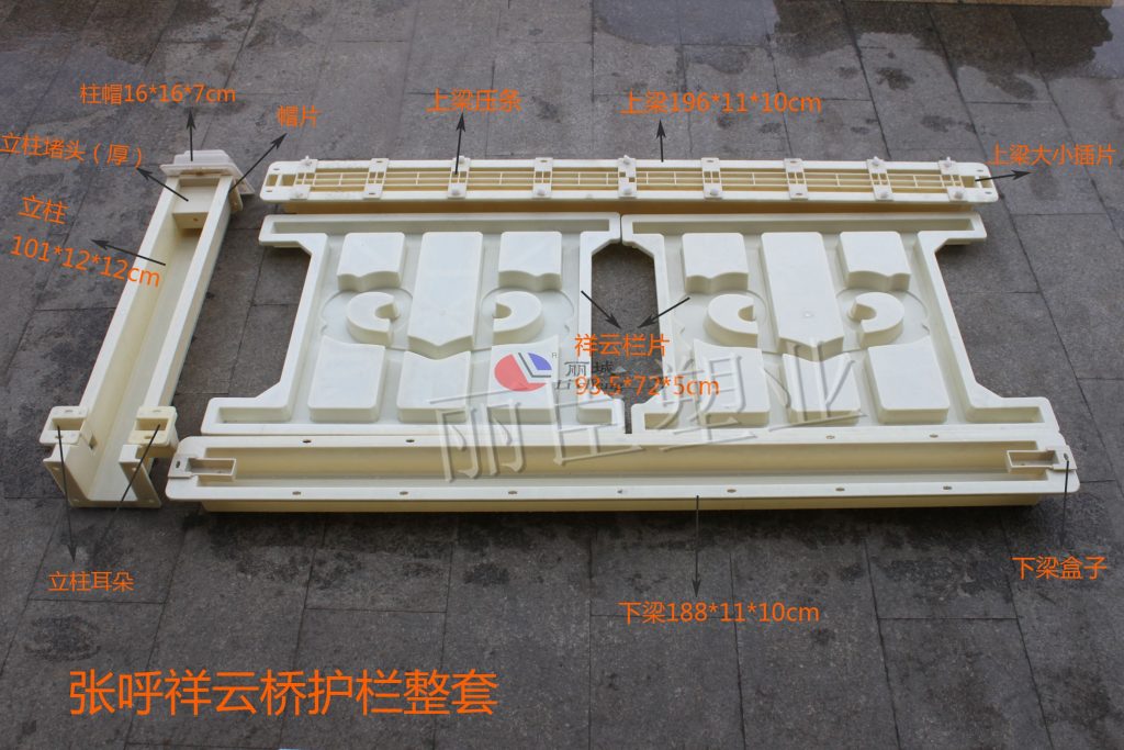 混凝土護欄模具主要用以張呼鐵路(張家口南站-呼和浩特東站)所需水泥混凝土護欄預制建設,其中所有原料都采用高精度標準的ABS塑料經高溫注塑加工成型,水泥欄片主要以祥云雕刻設計。