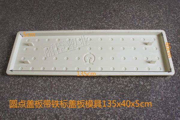 這款四孔圓點蓋板模具的尺寸為長135cm、寬40cm、高為5cm,用料上采用穩(wěn)定性較強的ABS為注塑原料,在澆筑水泥制品過程中能更好的保證砼制品模具不會發(fā)生變形,在對蓋板模具的四周添加了加強筋,小三角樣式更好的支撐塑料蓋板模具邊緣。