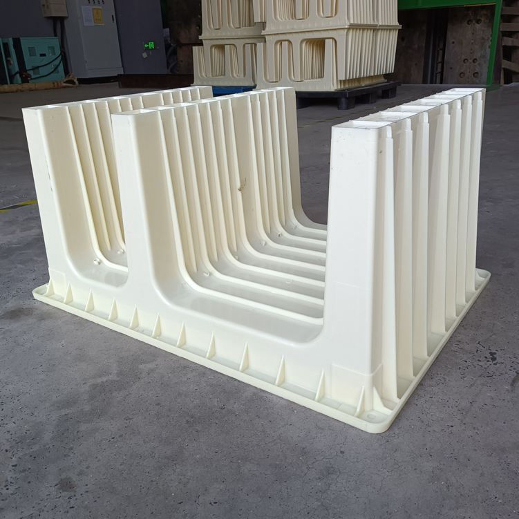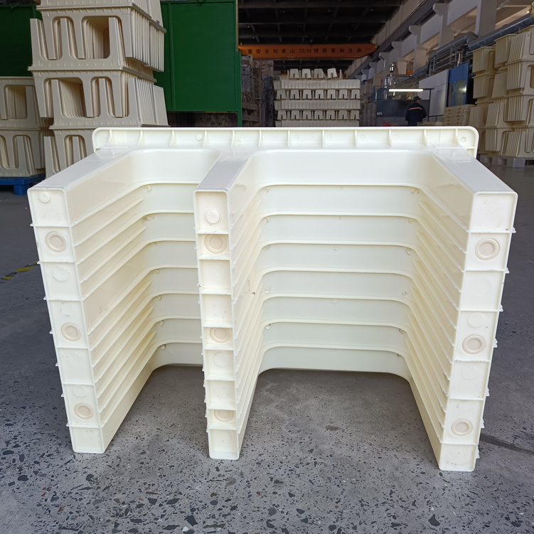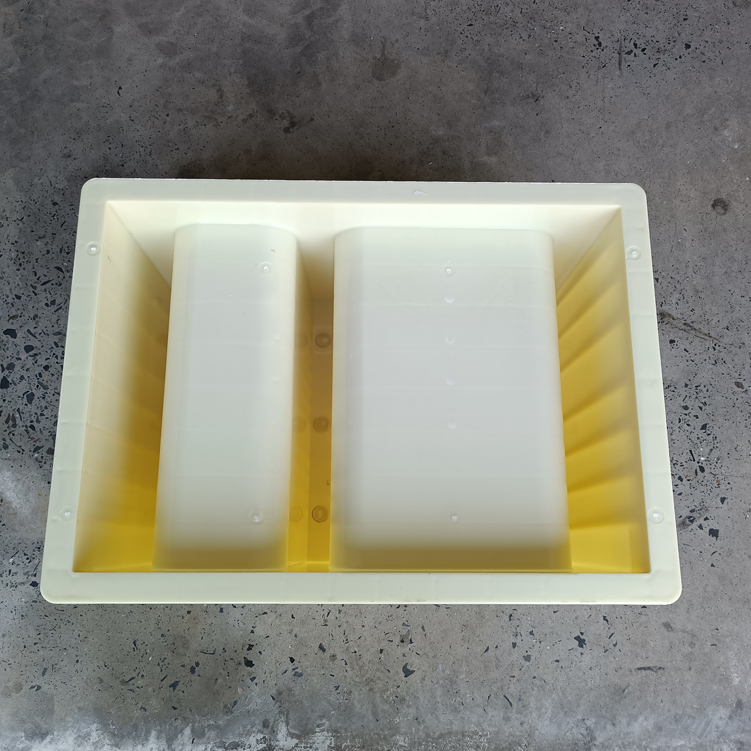 高鐵路基橋梁周圍、三孔立柱塑料模具,模具主體設有圓孔,預制時搭配塑料圓管使用...